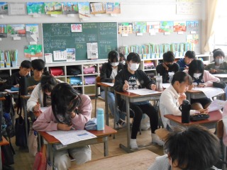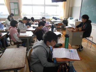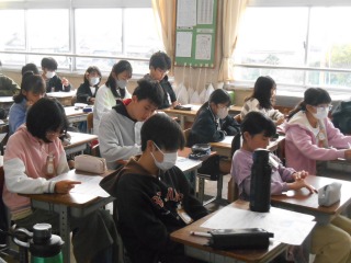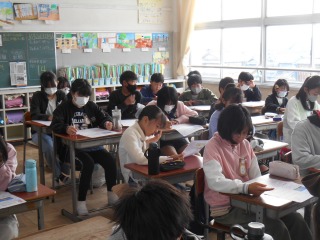 算数「比とその利用」のテストが返されていました。何を間違えやすいか、確認をしていました。