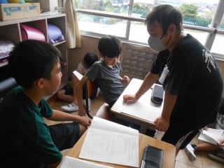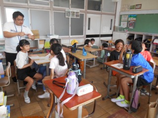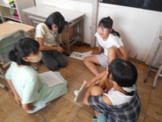 グループに分かれ、ダウトゲームでコミュニケーションスキルを養います。