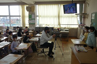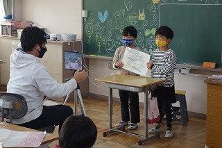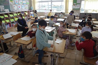 1年1組の学級活動は、6年生に向けた感謝のビデオ撮影をしました。