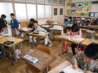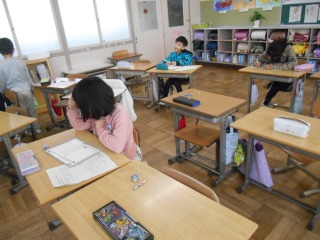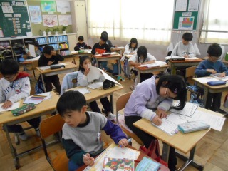 入学前のことについて振り返りながら、ワークシートに文章と絵をかいていました。
