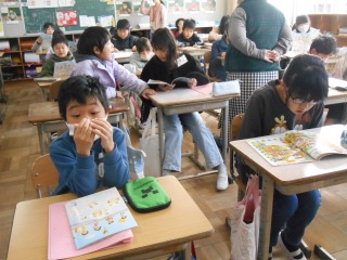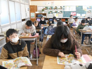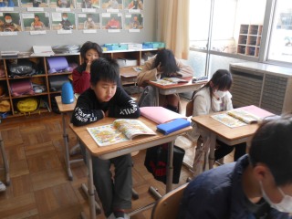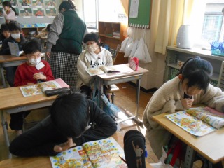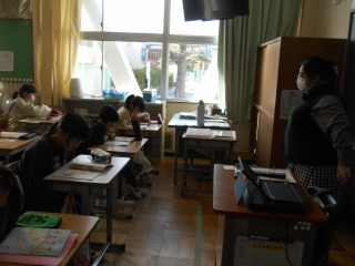 教科書のイラストにある単語を、限られた時間で覚え、発表します。