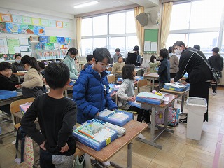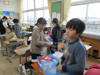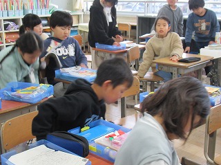 3年2組では、お道具箱の整理をしていました。