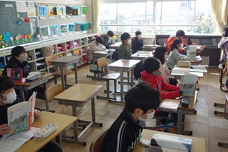 3年1組の国語は、「モチモチの木」の学習でした。主人公がおじいさんを救うために、山のふもとの医者まで走る場面の読みとりをしました。