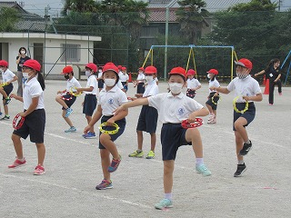 1・2年生が運動場でミワリンピックの表現の練習をしていました。とってもよく動きを覚えていて、とってもかわいかったです。一生懸命、足を動かしたら、長ぐつがとんでいくハプニングも・・・。みんな一生懸命踊ります。乞う、ご期待です。