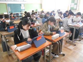 自分の目指す職業について、タブレットを使って調べ、まとめていました。