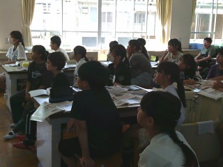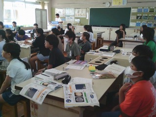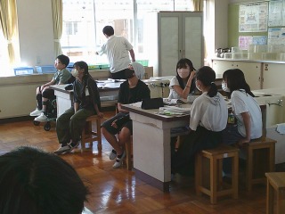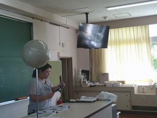 教室前方には月の模型があり、モニターの動画を見ながら月の運動の仕方を学習していました。