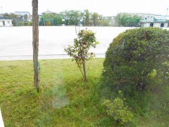 校長室の、はめごろしの窓の向こう側にある、1本のバラの木に花がつきました。
