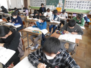 組み合わせの問題を学習していました。長椅子に座る場面で、どんな組み合わせで座れるか、考えていました。