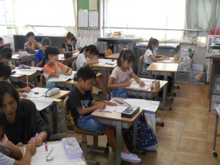先生二人で、声をかけながら大きな数字を使った計算の学習を進めていました。