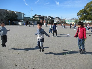 今日は、風もなく比較的暖かい日でした。子どもたちは、意欲的に跳んでいました。