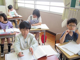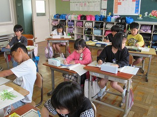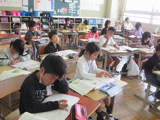 2年2組は国語の時間でした。教科書を読み、自分の感想を書いていました。自分の思いを伝える文章は書けたかな?