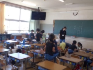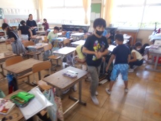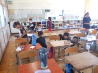 教室のごみを拾う活動をしていました。自分たちが生活する場所に、愛着がわきますね。