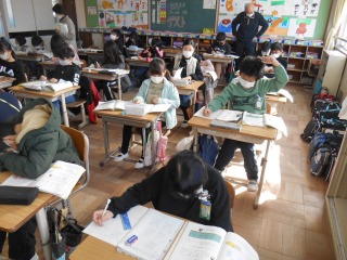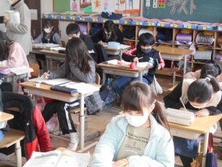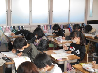 ひっ算の練習です。プリントを使って、大きな数字にもチャレンジしていました。