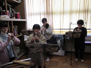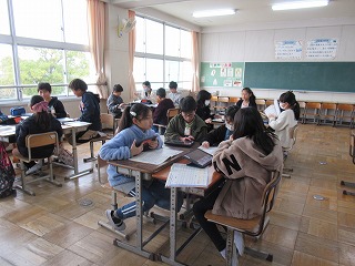 5年2組では、音楽の時間、グループに分かれ、合奏の練習やタブレット端末を使った学習をしていました。