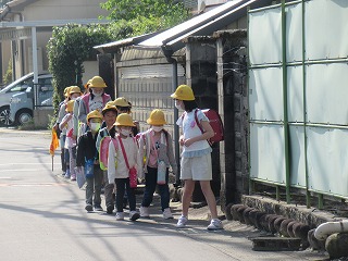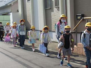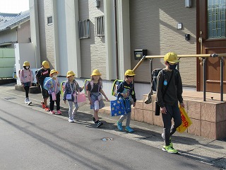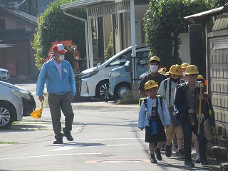 東門の通学班の登校の様子です。