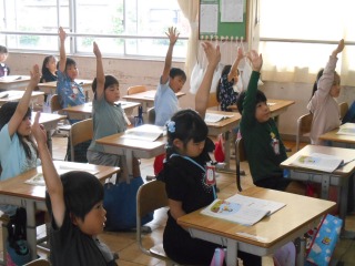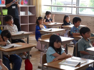 「う」と「お」や、「え」と「へ」の使い方を学習していました。