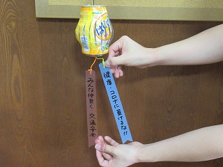 見守り隊の渡辺さんから、空きかんで作った飾りを学校にいただきました。まず、校長室に飾らせていただきました。地域の方々の学校への思いに感謝したいと思います。ありがとうございます。