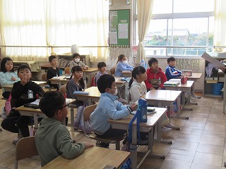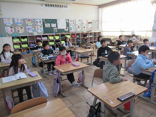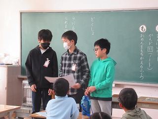 人権週間に、異学年に交流を深めます。今日は、6年生が1年生にその説明に来ていました。