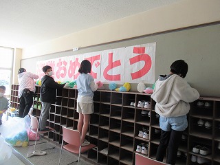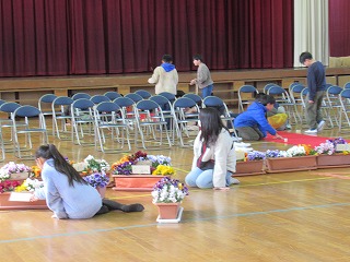 5年生の子どもたちが、先生方とともに、明日の卒業式の準備をしてくれています。