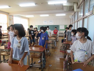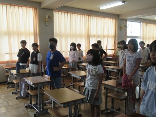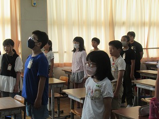 5年1組が、音楽室で音楽の授業を行っていました。校歌を力強く、また美しく歌っていました。