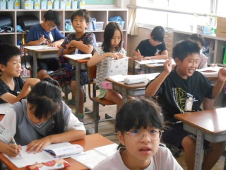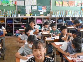 元気な挨拶が返ってきました。笑顔の多いクラスです。