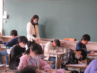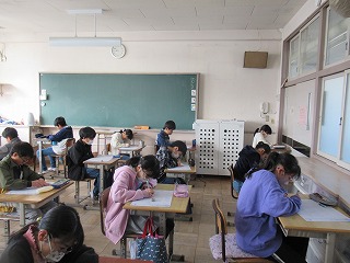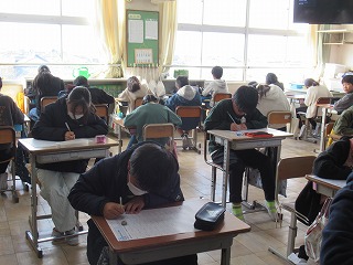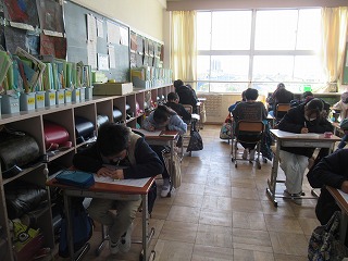 5年2組では、テストが行われていました。一生懸命、問題に取り組んでいました。