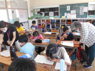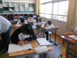 小数のわり算をひっ算を使って解く練習をしていました。プリントで繰り返し練習し、先生に確認してもらっていました。