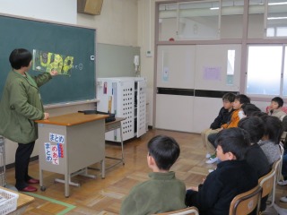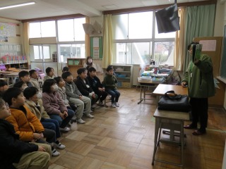 今年の干支である「へび」のお話でした。子どもたちがじっと見ながら聞いていました。