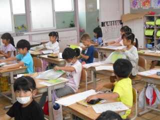 今週は、「すくすく週間」でした。生活を振り返り、記入をしているところでした。