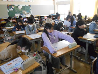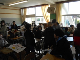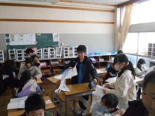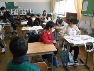 教材を持ち帰るバッグに、思い思いの絵を描いていました。上手です。
