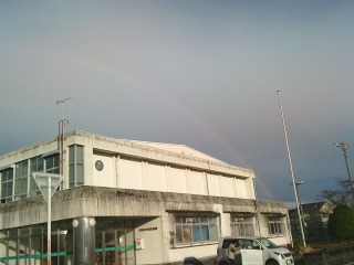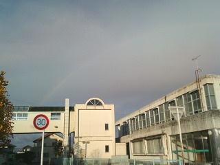 今朝は大きな虹が西の空に見えました。子どもたちは門をくぐる前に気付いていたようです。虹を見ると、幸せな気持ちになりますね。