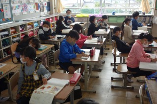 3年2組の国語は、「秋のくらし」の学習でした。自分が生活の中で見つけた秋について、ノートに書きました。