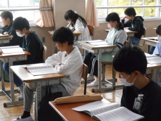 「君をのせて」を練習していました。初めてですが、楽譜を見ながら、知っている子がリードしながら歌っていました。