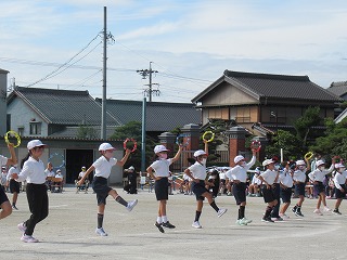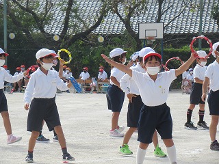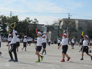 タンバリンをもち、一生懸命踊る姿にかいわいさ満開です。みんなよくがんばりました。