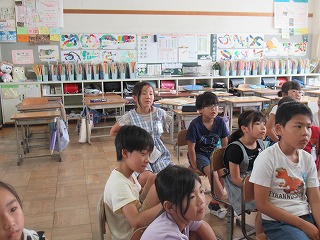 3年1組で、読み聞かせを行っていただきました。子どもたちは、お話の結末に反応していました。