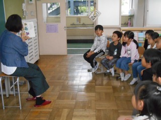 こちらも「ぐーちょきぱー」よりボランティアの方がいらっしゃり、読み聞かせをしていただきました。保護者の皆さんと地域の皆さんが協力して美和小学校を支えてくださっています。
