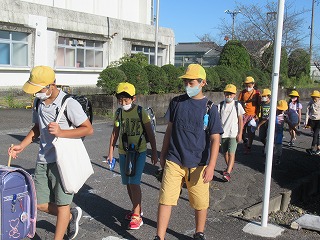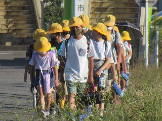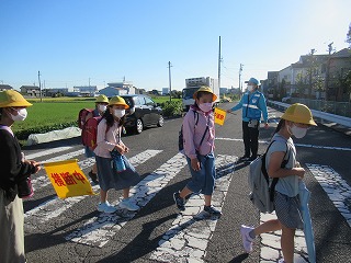 北門の通学団のようすです。今日は、気候もさわやかな朝を迎えています。