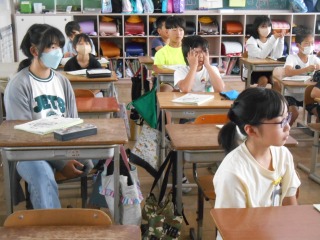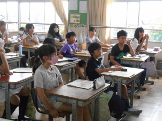 先週出かけた野外活動を振り返り、4年生へプレゼンテーションする準備をしていました。
