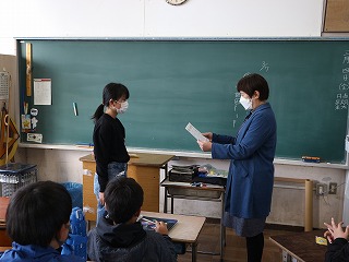 賞状が届いたのが朝礼の後でしたので、本日、6年2組の鈴木瑠妃亜さんの表彰を教室で行わせていただきました。