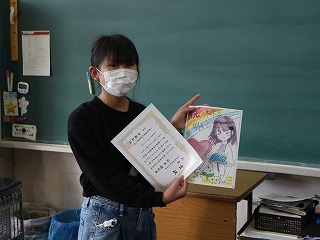 クラスの友達の温かい拍手と、入賞作品への「お~!」という賞賛と、賞品に対する「おお!」という歓声に、ほっこりした朝のひとときでした。