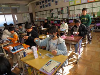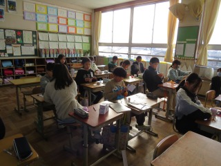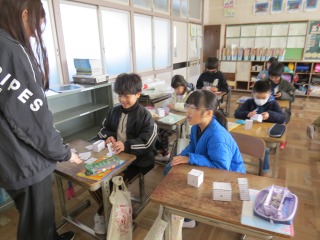展開図を切り、組み立てて立体を作っていました。どのような図形で立体ができているのか、理解がしやすいですね。