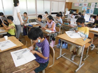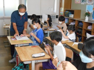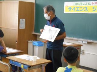 画用紙に印刷された街並みを箱にすることで、底なしの町が出来上がります。目の錯覚の不思議を体験していました。