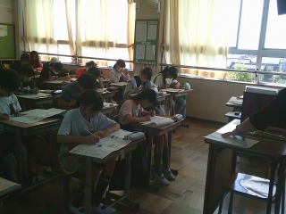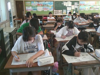 地層や火山などの単元の問題に取り組んでいました。学習したことを振り返りながら、頑張っていました。