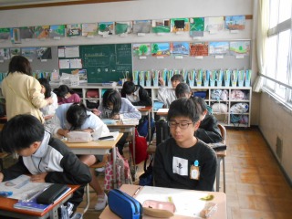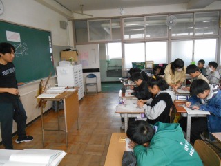 図形の縮小図の書き方を学習していました。同じものは何か、変わるものは何かを確認しながら作図をしていました。