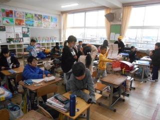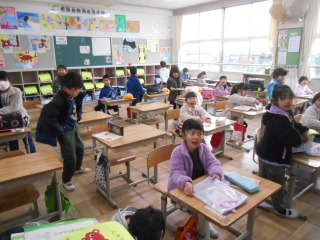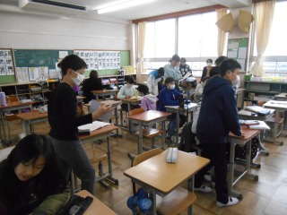 連絡帳を書いたり、提出物を出したりしていました。