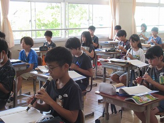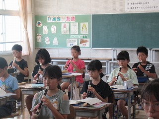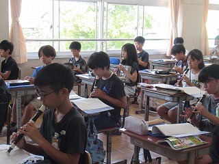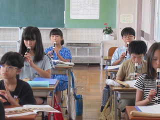 5年2組が、音楽室で音楽の授業を行っていました。もののけ姫をリコーダーで演奏していました。とっても美しい音色が響いていました。