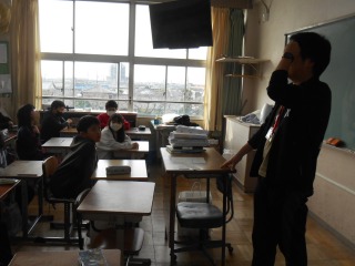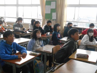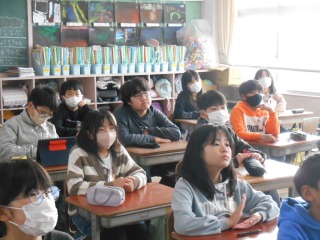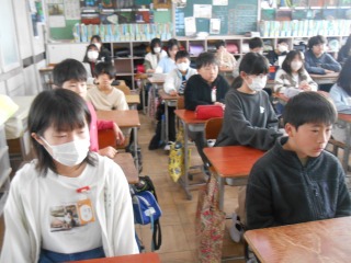 最近の暖かい気候について、地球の変化を感じる話を担任の先生がしていました。児童は、真剣に聞いていました。