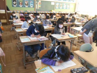 四角を使った式の計算練習をしていました。どんどん問題を解き、分かる問題が増えるように頑張っていました。