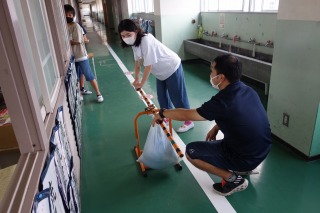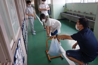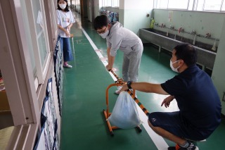 6年1組の理科は、てこの学習でした。実際に、重い荷物をてこを使って持ち上げました。