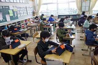 3年1組の総合的な学習は、プログラミング学習でした。スクラッチを使ったプログラミング作業の続きに取り組みました。